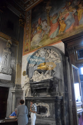 San Marcello al Corso. Piazza di San Marcello, 5. Unas hojas de palma caracterizan la bella fachada de travertino, obra de Carlo Fontana (1682-1686), de la iglesia más antigua del Corso. Dedicada, según la leyenda, al papa Marcelo, obligado por Majencio a trabajar en el servicio postal de la época, se levantó sobre un titulus del siglo V. Reconstruida en el siglo XII, se reedificó de nuevo en 1519 bajo la dirección de Sansovino (Antonio da Sangallo y Annibale Lippi la reconstruyeron después de 1527). La mano de Sansovino es aún reconocible, a pesar de la restauración purista, en la decoración del interior de la nave única con capillas laterales; la firma del maestro decora el monumento del cardenal Giovanni Michiel y su sobrino Antonio Orso, a la izquierda de la entrada.